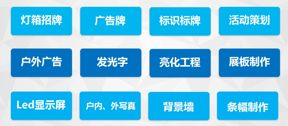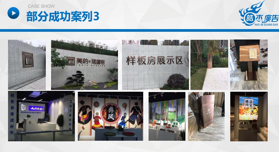 樂山市信杰廣告有限公司是一家是集設(shè)計、制作、代理、發(fā)布為一體的專業(yè)化廣告服務(wù)商。專業(yè)從事各類發(fā)光字生產(chǎn)、亮化工程施工、導(dǎo)視牌制作施工、UV平板噴印、寫真噴繪、會務(wù)會場布置、各類慶典儀式、展覽工程和戶內(nèi)外廣告制作項目。本公司能為不同領(lǐng)域的客戶在廣告宣傳方面提供一站式服務(wù)。公司注冊資金200萬元,擁有員工40余人,各類專業(yè)性技術(shù)人才30余人。公司主要設(shè)備包括大型激光切割機、激光焊字機、開槽機、大型UV平板打印機、數(shù)碼雕刻機、噴繪機、戶內(nèi)外寫真機等。公司秉承“嚴(yán)……